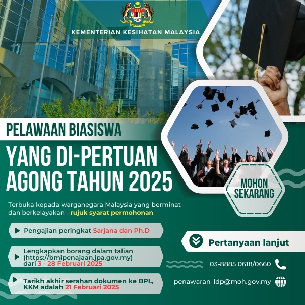 | HEBAHAN TAWARAN MENGIKUTI KURSUS DALAM PERKHIDMATAN SECARA SEPENUH MASA BAGI SESI 2026/2027 DI BAWAH PENAJAAN KEMENTERIAN KESIHATAN MALAYSIA 01-10-2025 |