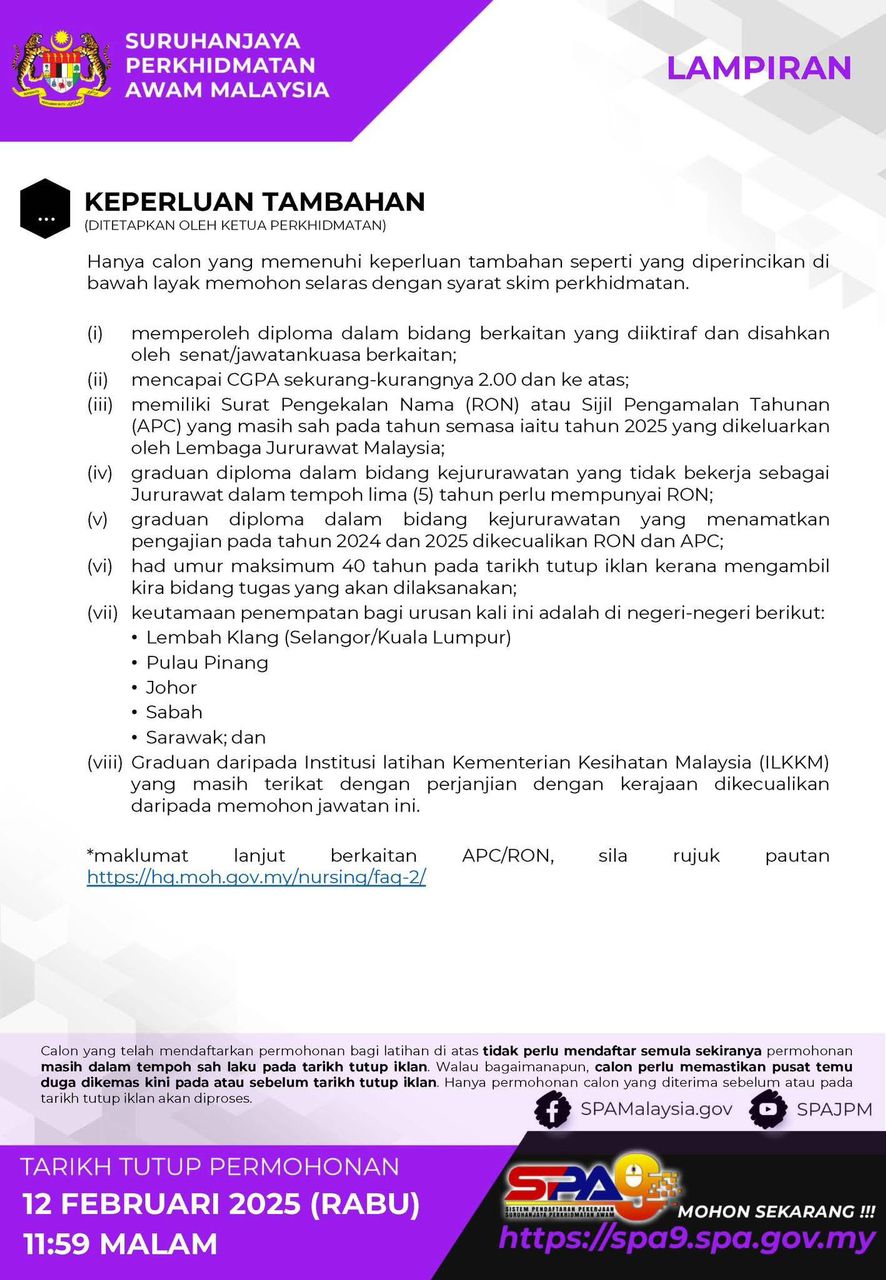 | URUSAN KENAIKAN PANGKAT BAGI SKIM JURURAWAT (PERUBATAN/ KESIHATAN AWAM) GRED U5/U6/U7 KE GRED U9 DI KEMENTERIAN KESIHATAN MALAYSIA 26-09-2025 |