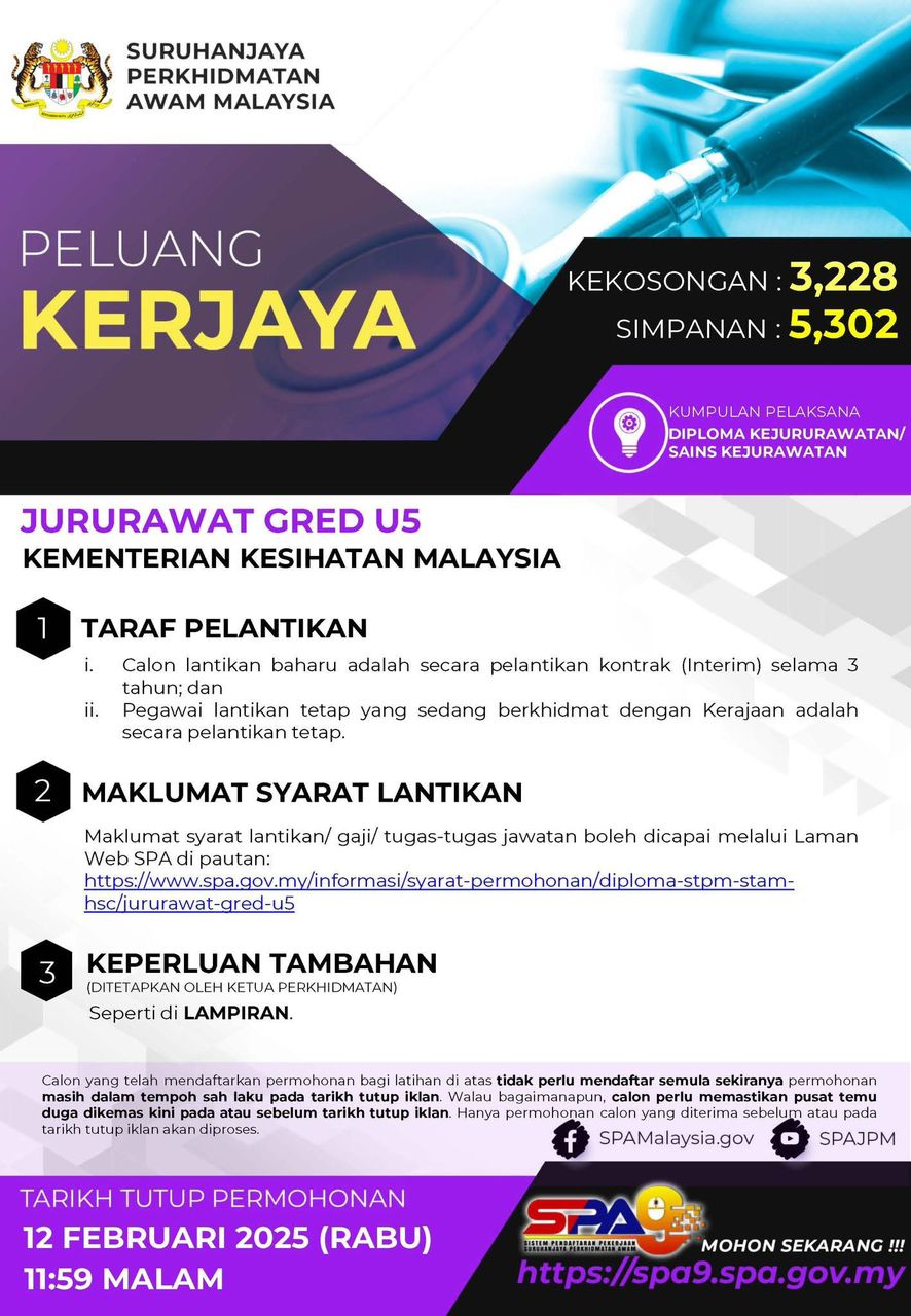 | URUSAN KENAIKAN PANGKAT JURURAWAT (PERUBATAN) GRED U5 KE GRED U6 DI KEMENTERIAN KESIHATAN MALAYSIA 18-06-2025 |